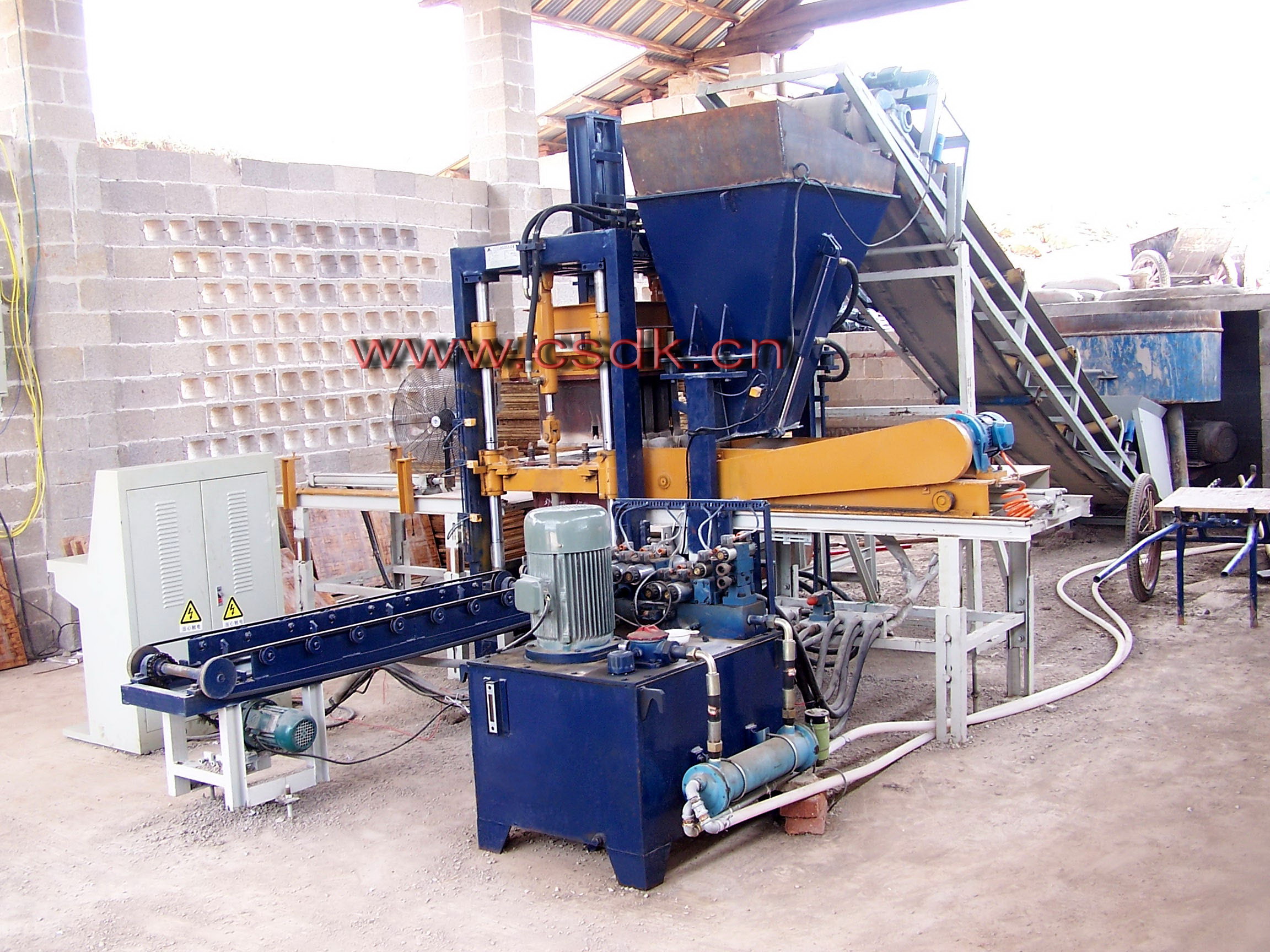 1、該機采用立式、振動、擠壓、原理使混凝土成形。